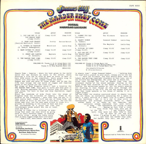 Producer - Jimmy Cliff (A1, A4, A6, B4 to B6), Leslie Kong (A3, A5, B2, B3)